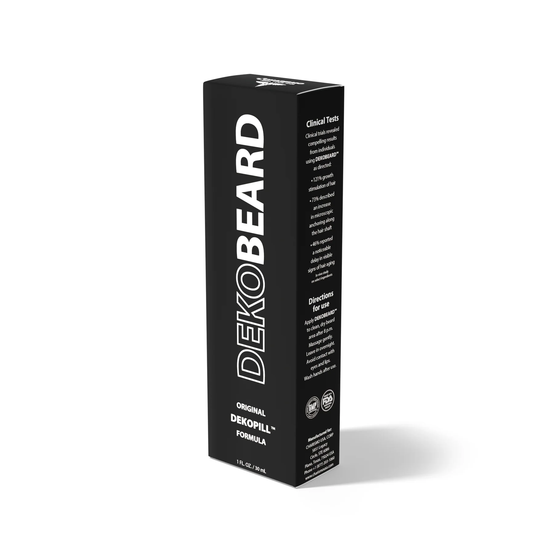 Effectively counteract bald patches and thinning, and dry, brittle hair with DEKOBEARD™. This powerful formula stimulates beard and mustache growth by activating dormant follicles. Our unique formula works quickly to hydrate, strengthen, and repair with a potent blend of tripeptides, vitamins, nutrients, and oils.